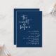 Announce your happily ever after in style with our modern Navy Blue theme design (The Night Before) wedding rehearsal celebration invitation card. It is ideal for couples who have decided to celebrate the night before their big day. With its sophisticated yet playful design, this invitation is sure to set the tone for an unforgettable event. The invitation card features modern romantic script design, adding a touch of timeless elegance to your celebration.