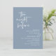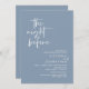 Announce your happily ever after in style with our modern dusty blue theme design (The Night Before) wedding rehearsal celebration invitation card. It is ideal for couples who have decided to celebrate the night before their big day. With its sophisticated yet playful design, this invitation is sure to set the tone for an unforgettable event. The invitation card features modern romantic script design, adding a touch of timeless elegance to your celebration.