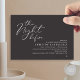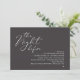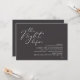 Announce your happily ever after in modern romantic style with our charcoal grey theme design (The Night Before) wedding rehearsal celebration invitation card. It is ideal for couples who have decided to celebrate the night before their big day. With its sophisticated yet playful design, this invitation is sure to set the tone for an unforgettable event. The invitation card features modern romantic script design, adding a touch of timeless elegance to your celebration. Designed by TeeshaDerrick