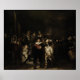 The Night Watch by Rembrandt van Rijn, oil on canvas 1642, is an enormous portrait painting of an entire military company renowned as one of the greatest paintings of the Dutch Golden Age. Originally titled The Company of Captain Frans Banning Cocq and Lieutenant Willem van Ruytenburch, the painting imaginatively foregoes the traditional static lineup of figures of group portrait painting and casts an entire militia in dynamic motion, arming themselves and raising their colours, preparing to march forth. The picture’s restoration and removal of darkened varnish in the 20th century revealed that the scene depicts the company stepping forth into bright sunlight from a shadowy courtyard. Rembrandt dramatically deploys his famous chiaroscuro effects to reveal form emerging from darkness, which combined with the painting’s realism, uncanny sense of motion and colossal scale with life-sized figures made The Night Watch one of the most famous paintings in all of Western art.