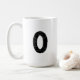 The number zero (0) in black coffee mug
