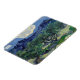 The Olive Trees by Vincent Van Gogh, oil on canvas 1889, is a landscape painting of the gnarled forms of an olive orchard aggressively growing from the swirling forms of hilly, sandy soil against a background of undulating hills under a dark blue sky and eerie, flattened white clouds. Painted in thick brushstrokes of brilliant, impasto oil paints, the picture captures the forms and movements of trees, landscape and sky with thick, dark outlines that follow the contours of expressionistic, undulating forms. Van Gogh painted a series of olive trees while undergoing treatment at the asylum in Saint Remy, in the Provence region of the south of France, and this version is a companion piece to his famous Starry Night painting. The painting reveals the expressive power of the artist before nature that developed in the mature, Post-Impressionist that Van Gogh created in the final years of his life.