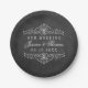 Celebrate in style with these elegant chalkboard style wedding paper plates. The design features an ornate swirl design with matching easy to personalise script font wording. These paper plates are perfect for any couple planning a romantic wedding celebration but can easily be customised for any fancy event such as birthday parties, baby showers, anniversary party, engagement and bridal showers and much more. Matching wedding items can be found in the collection.