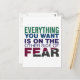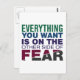 Very bold message in bold colours about overcoming fear. To accomplish what you what, you have to get past your fears. Everything You want is on The Other Side of Fear.