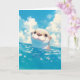 A joyful otter floats in the clear blue water, looking up with an adorable smile and sparkling eyes. The bright blue sky and fluffy clouds above reflect the playful and content nature of this charming otter. The soft ripples in the water and the otter’s gentle expression capture the tranquillity and joy of nature, making this image perfect for anyone who loves wildlife and the beauty of playful animals.