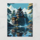 The painting of a Japanese Monestry with trees and Postcard