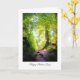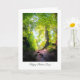A great card showing a view of the last of a dark, steeply inclined path, rising to a sunny glade beyond. Late afternoon sun is flooding through the trees ahead and dappling the last of the path, warmly inviting you to make the final effort.
