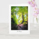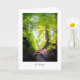 A great card showing a view of the last of a dark, steeply inclined path, rising to a sunny glade beyond. Late afternoon sun is flooding through the trees ahead and dappling the last of the path, warmly inviting you to make the final effort.