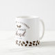 Trendy and unique coffee wedding favour mug designed with coffee beans . Personalise with bride and groom names and wedding date.
