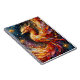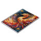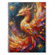 In Shades of Orange and purple in a dark midnight sky of stars flies a Phoenix