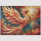 In Shades of Orange and purple in a dark midnight sky of stars flies a Phoenix