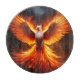 A magnificent phoenix emerges from a bed of glowing embers, its wings ablaze with fiery hues of red, gold, and orange. Flames dance around its majestic form, symbolizing renewal, resilience, and the eternal cycle of life. With piercing eyes full of wisdom, the mythical bird soars against a darkened sky, embodying the transformative power of fire and the triumph of rebirth.