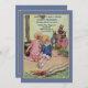 An heirloom image of a little boy and girl sitting on a blanket having a picnic under a tree. Along comes mother hare with her two little ones wishing to join in the fun. The scene is double framed in gold and blue. br/>