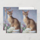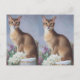 Send a note in style with this painterly Abyssinian cat postcard. Its warm cinnamon tones, almond-shaped eyes, and floral accents create a timeless and graceful design.