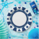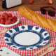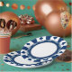 A poker chip style graphic on a festive party plate.