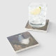 The coasters are gorgeous, a quality feel and heavy weight. They look like a precious archeological find. A rustic stone juxtaposed with a modern floral black and white print. I like the way the print goes slightly imperfect on the cut stone edges giving them a kind-of natural beauty.