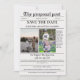 Minimalist proposal post script newspaper wedding save the date with three photo, photo of the groom and the bride when they were kids and when they are grown up.