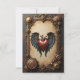 The pulsating heart of mechanics, a glowing steampunk heart. The frame features the characteristic steampunk style, chraacterised by a fascinating blend of Victorian elegance and industrial flair. Complex mechanical details such as intricate gears, screws, and bolts adorn the edge, lending depth and texture to the design. The heart is mechanically designed, with visible springs, small gears, and metallic embellishments that symbolise its vitality in a technical context. Flanking the heart are dark wings.