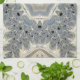 This captivating and intricate kaleidoscopic fractal pattern features a symmetrical, star-shaped centre that radiates outward with swirling, recursive designs reminiscent of organic, floral, or oceanic forms. The palette is dominated by soft, muted tones of beige, cream, pale blue, and grey, creating a serene and harmonious atmosphere. The fractal spirals are finely detailed with delicate loops, swirls, and small black voids that add depth and contrast to the composition. The repeating patterns give it a sense of infinite complexity and mesmerizing beauty, evoking a sense of cosmic or natural elegance.
