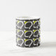 The Q mug features small chartreuse Quaero Qs in a geometrical pattern.