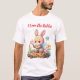 Print: Above the rabbit image is the line "I Love The Rabbit" written in a soft, red font, standing out on a white shirt background.