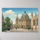 This is a drawing of the Radcliffe Camera in Oxford University in Japanese woodblock print (ukiyo-e) style printing. The Radcliffe Camera is a distinctive, circular, neoclassical library building in Oxford University, built in 1749, named after royal physician John Radcliffe.