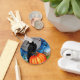 Original painting by Sandra Gale for the Halloween season featuring a black raven perched on a pumpkin. Great design for kids and adults to celebrate the spooky Halloween holiday.