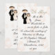This sweet Wedding Invitation has a white background with soft pick wedding bells on it and features a bride and groom. The invitation has two sides to it. The front contains the wedding details and the back has the details for the reception. The designed was designed by Sketchart26 using artwork by Delightful Doodles.