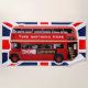 Type anything you like in the editable text box to personalise this cool beach towel featuring a vintage red Routemaster bus, a famous symbol of London and England, set on the Union Jack!