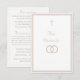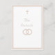Design front features a pure white background to elegant, pale-pink heading displayed in center. The image of an elegant cross graces the top, as the image of joined wedding rings appears below heading. Entire design is framed by a fine, elegant border which adds a classy appearance to the design. Reverse features text displayed in the proper format for a traditional Catholic enclosure card which includes reception information, accommodations information. Bridal registry information is featured at bottom.