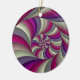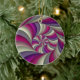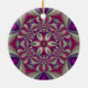 The reversable 2 for 1 Coil ornament is a modern abstract fractal image of a tightly coiled spiral. The second side shows quilt-like kaleidoscopic transformation of the original coil. Colour motif is warm pinks, lavenders and creams. Created in MBF. An elegant ornament sure to be treasured for years.