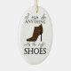This cute design features a high heel shoe and the text " I can do anything with the right shoes". Customise the background colour to the colour of your choice by clicking "customise It", Click "Edit" and then click "Background" and choose your colour. This fun keepsake ornament makes the perfect gift for any shoe lover!