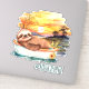 Fun "summer vibes" vinyl decal features watercolor digital art design of a cute lazy sloth floating down the river with #riverlife text