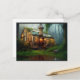 A Steampunk style workshop on a mossy river bank - a digital art postcard created with AI software