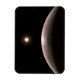 Artist's concept of the rocky exoplanet LHS 475 b and its host star. The planet is only a few hundred degrees warmer than Earth. The planet whips around its star in just two days, far faster than any planet in the solar system, but its red dwarf star is less than half the temperature of the Sun. LHS 475 b is relatively close, 41 light-years away, in the constellation Octans.