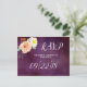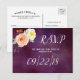 This collection features a moody eggplant purple background with trendy typography and floral accents. Easily personalise the design with your wording to make these RSVP postcards totally unique to your special day.