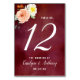This collection features a moody marsala red background with trendy typography and floral accents. Easily personalise the design with your wording to make these table number cards totally unique to your special day.