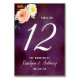This collection features a moody eggplant purple background with trendy typography and floral accents. Easily personalise the design with your wording to make these table number cards totally unique to your special day.