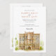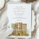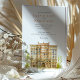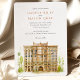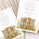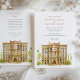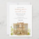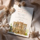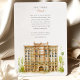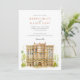 Invite your guests to a sophisticated urban celebration with this beautiful watercolor wedding invitation, featuring the iconic Rookery Building in Chicago. The artwork exquisitely captures the historic landmark's detailed facade, known for its distinctive reddish-brown and terracotta Romanesque and Commercial style architecture, rendered in a soft, refined watercolor style. The building's warm tones of reddish-brown, ochre, and beige are complemented by touches of grey-blue in the windowpanes. It is gracefully framed by stylised foliage: on both sides, there are sprigs with light green, rounded leaves and elongated yellowish-green leaves, along with soft green bushes at the base, adding a touch of organic softness to the architectural grandeur. This invitation is perfect for couples seeking a classic, architectural, and elegant Chicago wedding. The front elegantly presents your wedding details, while the reverse side offers "The Finer Details" for guest information.
