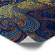 A full-size, close-up poster of a horse drawn with soft yellow, blue, and orange lines on a dark blue background. Abstract vector fractal art, wave function, Zentangle style, and 3D shading combine to create a mesmerizing, intricate pattern. The vibrant, flowing lines create a sense of dynamic movement against the deep, contrasting background, evoking a powerful and artistic representation of the animal.