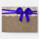 The rustic blue bow wedding collection is a stunning design featuring a lovely rustic burlap effect background with a romantic vintage white lace effect trim and a stunning blue bow.