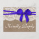 The rustic blue bow wedding collection is a stunning design featuring a lovely rustic burlap effect background with a romantic vintage white lace effect trim and a stunning dark blue bow.