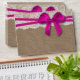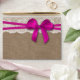 The rustic pink bow wedding collection is a stunning design featuring a lovely rustic burlap effect background with a romantic vintage white lace effect trim and a stunning pink bow. These invitation envelopes can be personalised for your special occasion and would be the perfect matching envelopes for your wedding announcements, bridal shower invitations, engagement party invites, birthday party invites and much, much more.