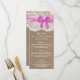 The rustic pink bow wedding collection is a stunning design featuring a lovely rustic burlap effect background with a romantic vintage white lace effect trim and a stunning pink bow.