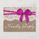 The rustic pink bow wedding collection is a stunning design featuring a lovely rustic burlap effect background with a romantic vintage white lace effect trim and a stunning dark pink bow.