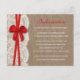 The rustic red bow wedding collection is a stunning design featuring a lovely rustic burlap effect background with a romantic vintage white lace effect trim and a stunning red bow.