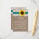 The rustic sunflower collection is a stunning design featuring a lovely rustic burlap effect background with a romantic vintage white lace effect trim finished with a stunning sunflower and teal ribbon. These Detail Cards can be personalised for your special occasion and would make the perfect matching insert for a wedding suite, bridal shower, engagement party, birthday party and much, much more. These cards can be used to create Detail Cards, Guest Information Cards, Accommodation Cards, Direction Cards, Gift Registry or Wishing Well Cards as well as Ceremony and Reception Cards. Matching wedding items can be found in the collection.