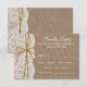The rustic twine bow wedding collection is a stunning design featuring a lovely rustic burlap effect background with a romantic vintage white lace effect trim finished a twine ribbon and bow.