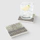 The coasters are gorgeous, a quality feel and heavy weight. They look like a precious archeological find. A rustic stone juxtaposed with a modern floral black and white print. I like the way the print goes slightly imperfect on the cut stone edges giving them a kind-of natural beauty.