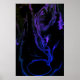 A poster with blue abstract art that is a rendition of a soul-searching scream and the release.